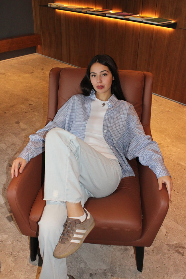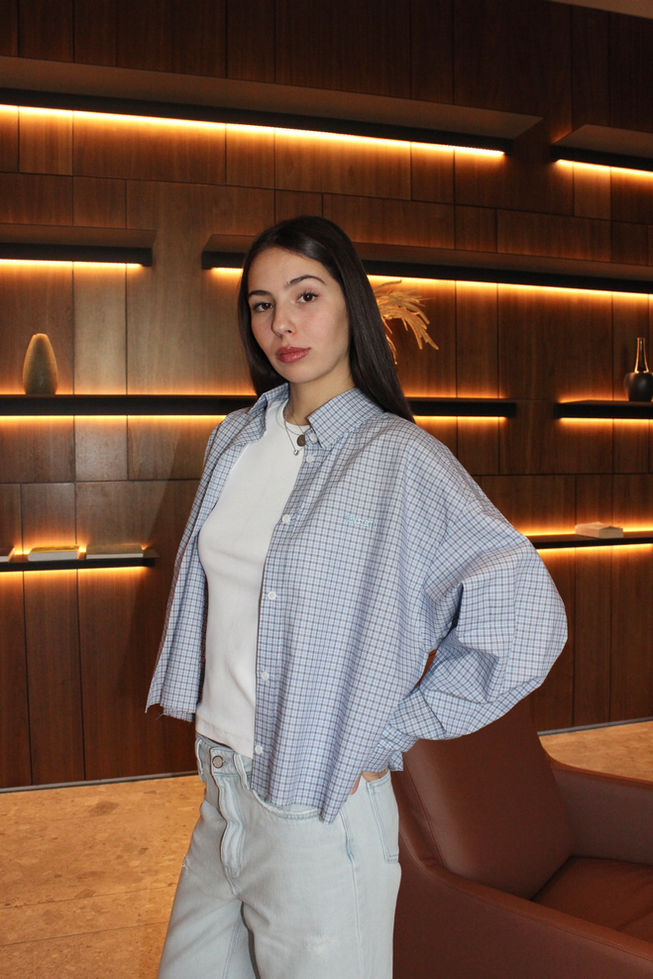 Сорочка у дрібну клітинку з укороченим силуетом та необробленим низом. Виготовлена з мʼякої, приємної до тіла тканини, що забезпечує комфорт упродовж дня.